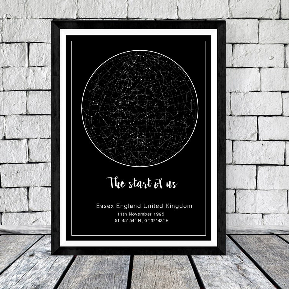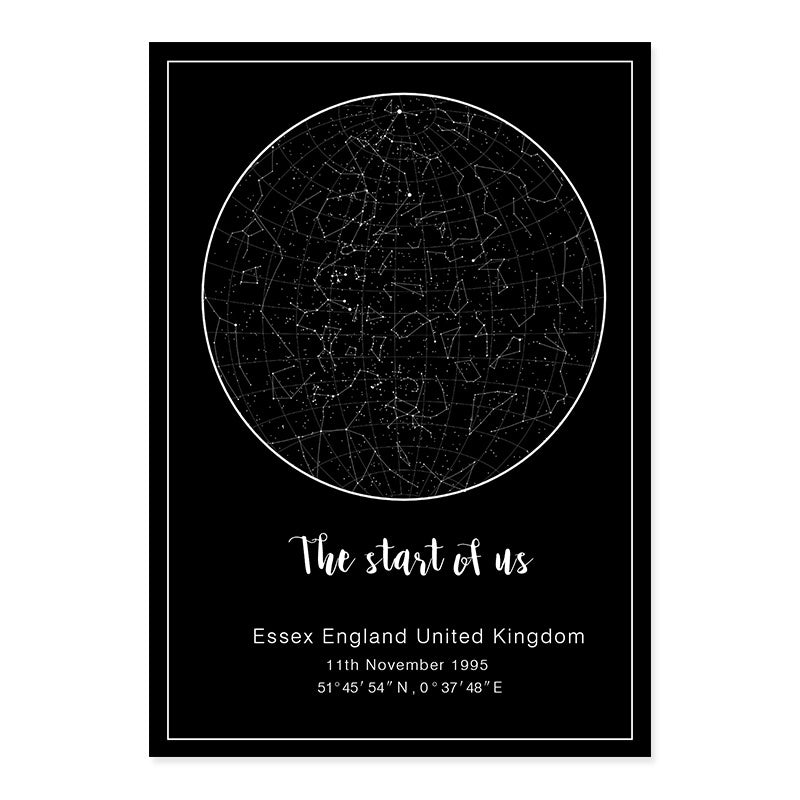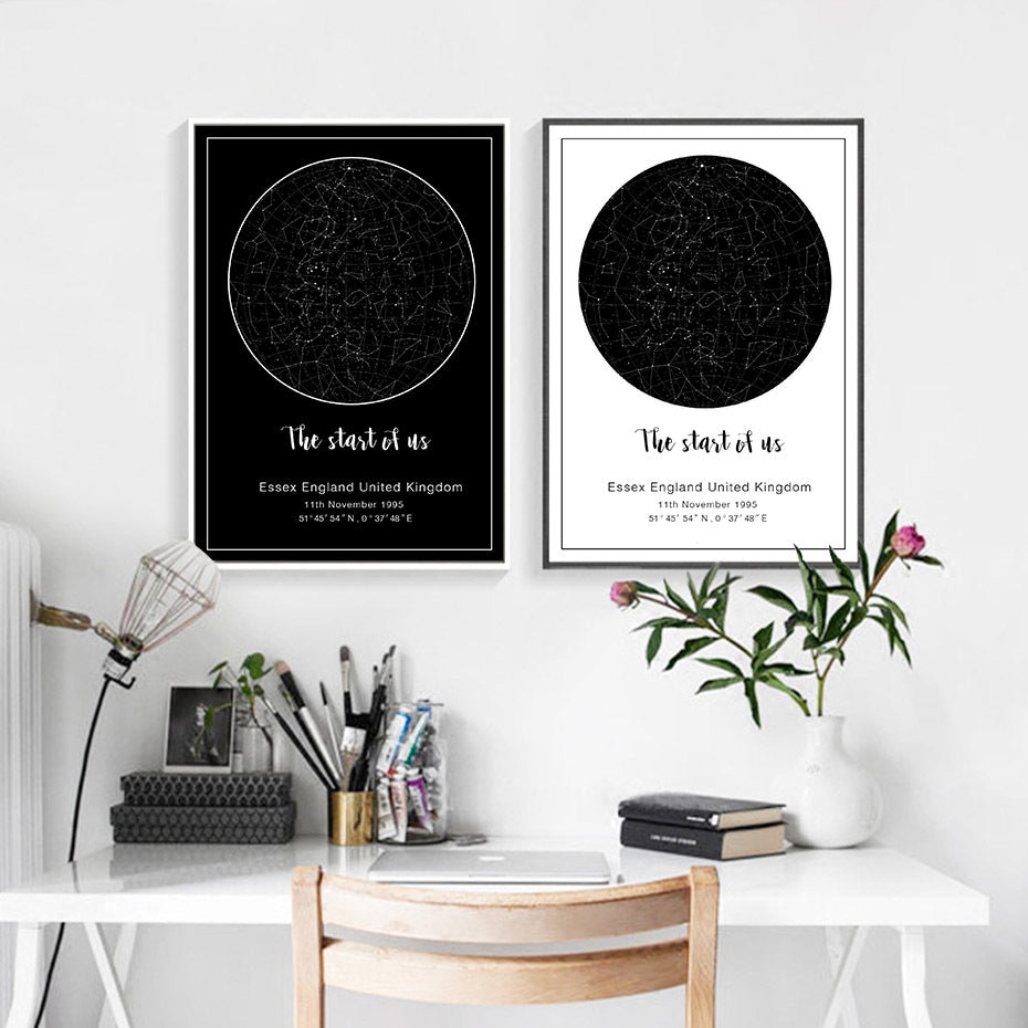 Star Map And Moon Phases Canvas Painting Black And White Poster Wall Art Picture