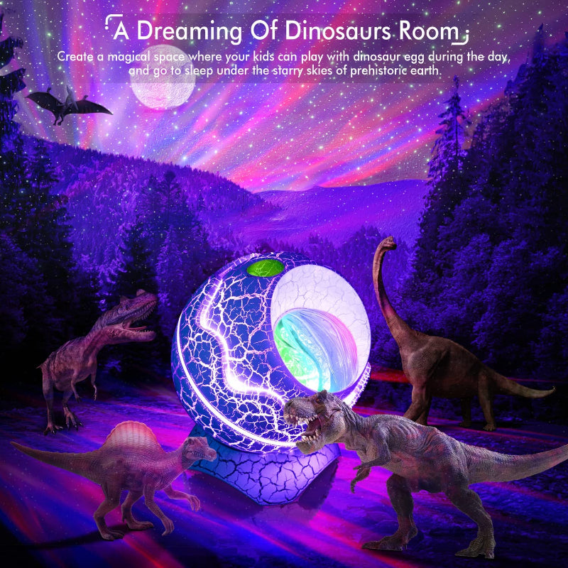 - White Noise Sound Machine - The night light projector includes 19 popular white noise sounds that are both relaxing and soothing while you try to fall asleep or during meditation. Combining both the gentle sounds from the white noise sound machine with the baby-friendly memorizing RGB LED night light will grant an unforgettable experience that will put any soul at ease. Both kids and adults can enjoy this fun and versatile dinosaur egg starry night light projector for every restful night's sleep.