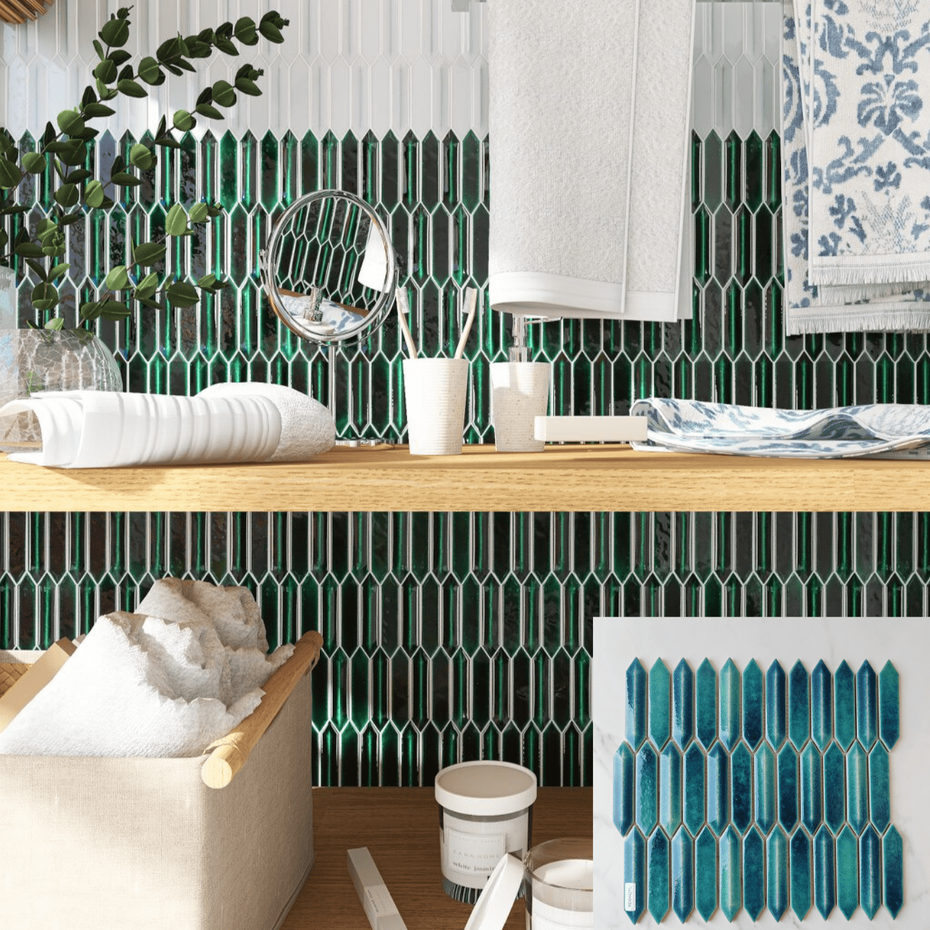 Starry Blue 3D Arrow Shape Mosaic Tile