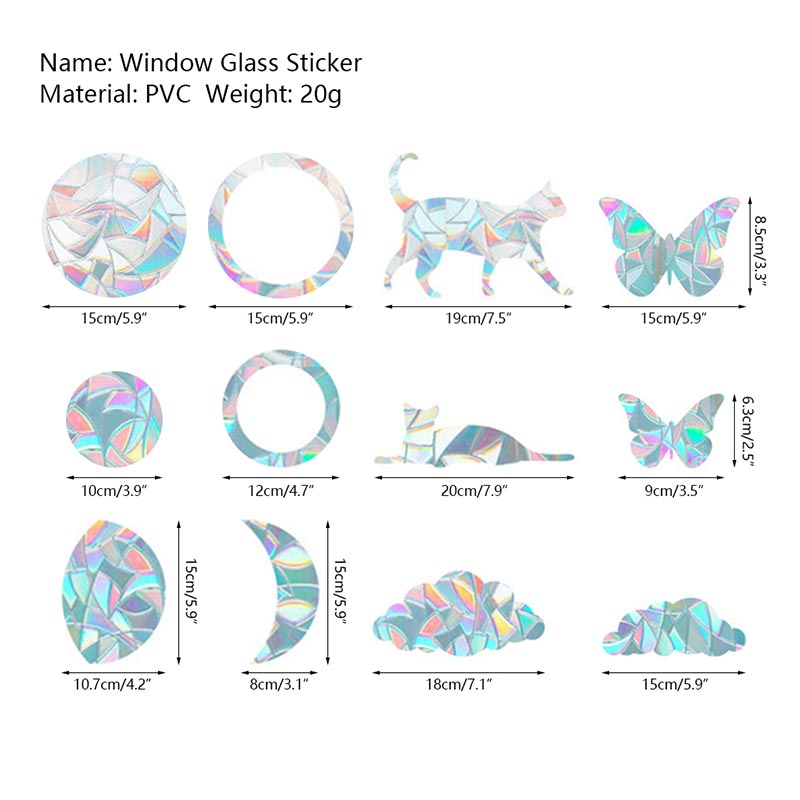 The Sun Catchers reflects the light from outdoors to give you a beautiful rainbow display inside your home. The Sun Catchers come in many different shapes and sizes, and give varied reflections depending on the weather and angle of the sun. Enjoy your own lightshow that changes over the course of the day. Sun Catchers are easily put up and removed as they use static cling to remain in place, no need for any sort of glue!