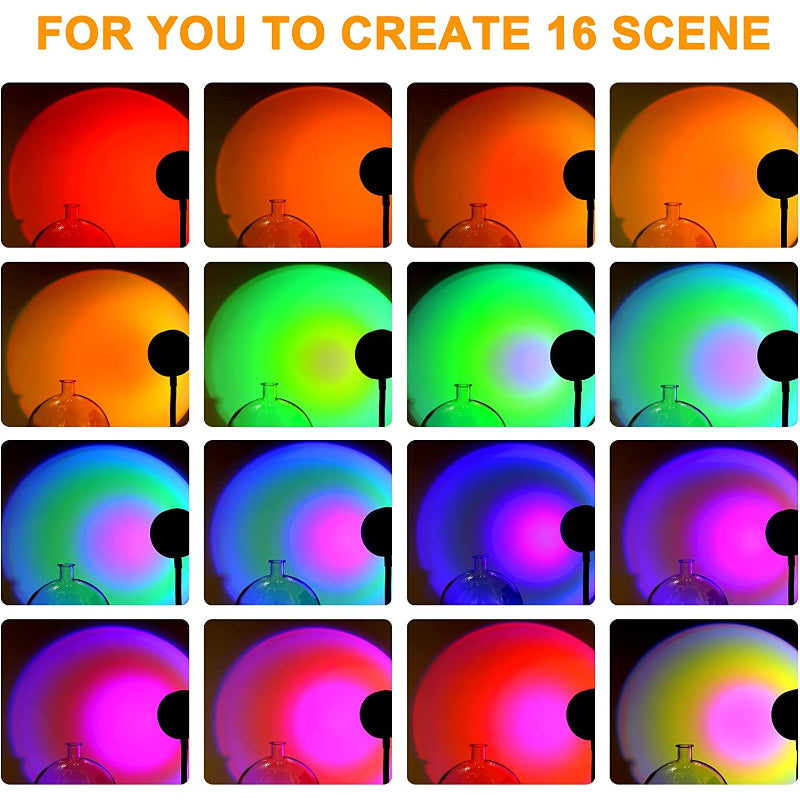 - Sunset Lamp: A projector lamp light up your room with sunset light/ Rainbow light, and color changes as sky blue, rose pink, forest green... All 16 colors condensed into an incredibly romantic atmosphere. Inspiration comes from life and benefits your soul.
