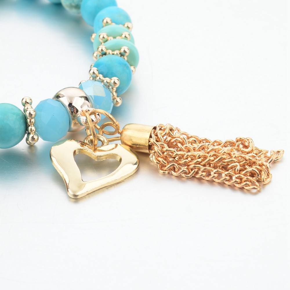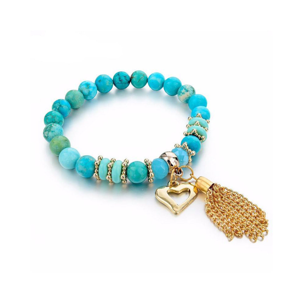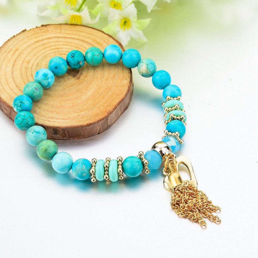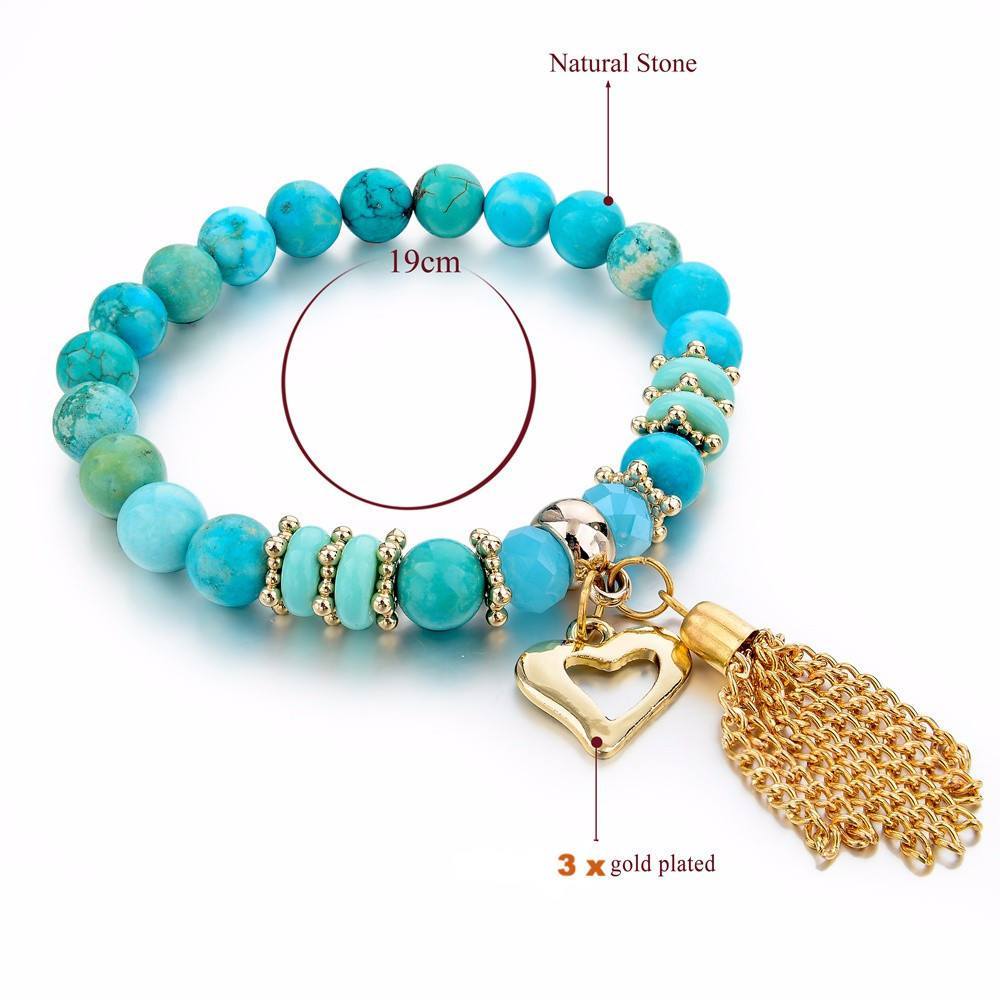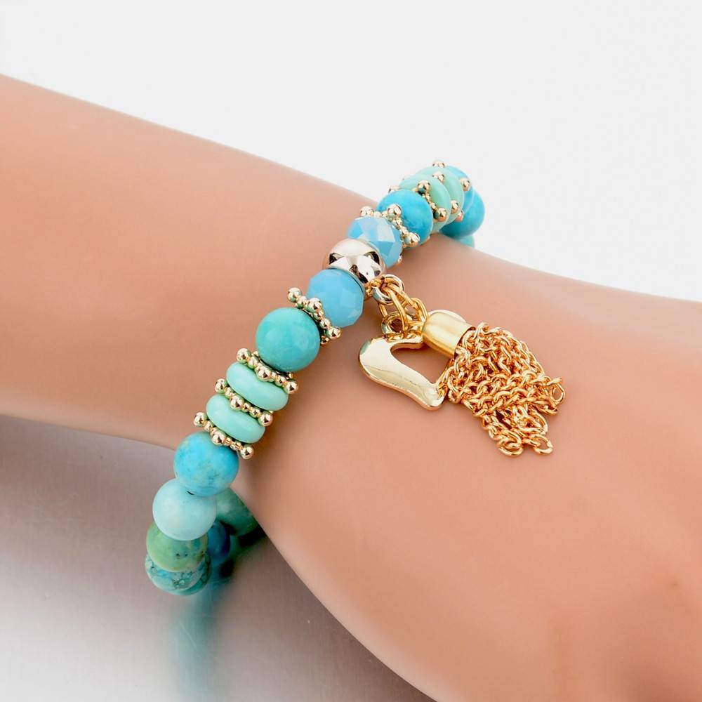 TURQUOISE NATURAL STONE BEADS & GOLD TASSEL BRACELET