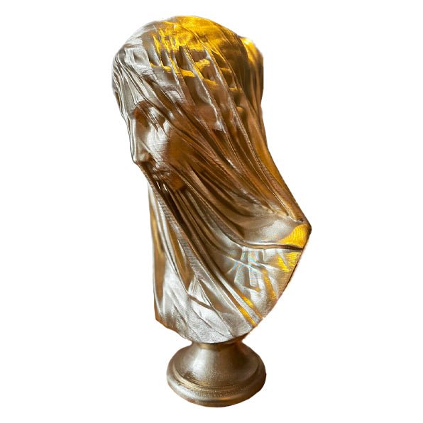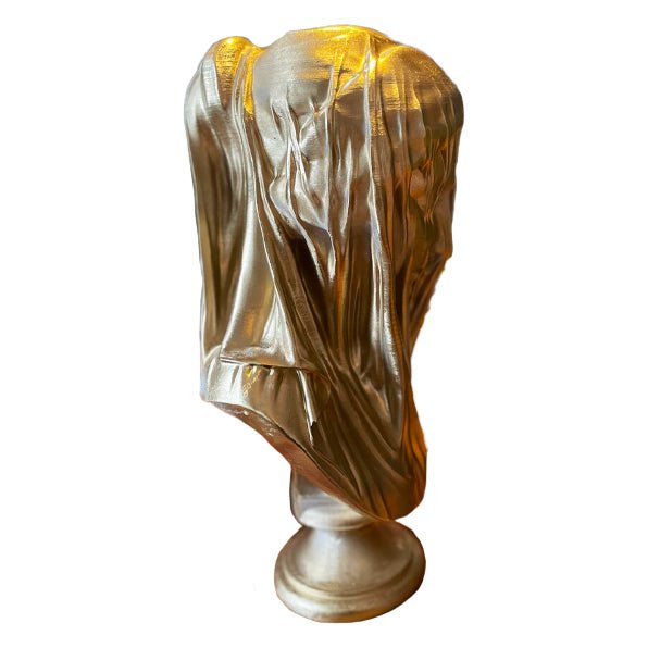 Introducing the Veiled Lady in Gold Sculpture, a breathtaking and exquisite masterpiece that embodies grace and elegance. This exceptional sculpture portrays the head of a lady delicately covered in a mesmerizing golden veil, meticulously crafted with meticulous attention to detail. The lustrous gold finish adds a touch of opulence and allure to the artwork, elevating its beauty to new heights. The intricate details of the lady's serene face and the flowing folds of the veil create a sense of ethereal beauty and mystery. Whether displayed in an art gallery, an elegant living space, or a sophisticated office, the Veiled Lady in Gold Sculpture becomes a captivating centerpiece, radiating an aura of sophistication and enchantment. Immerse yourself in the captivating presence of this sculpture, and let it inspire you with its timeless elegance and the allure of the veiled lady's hidden secrets.