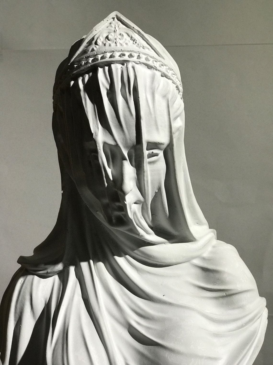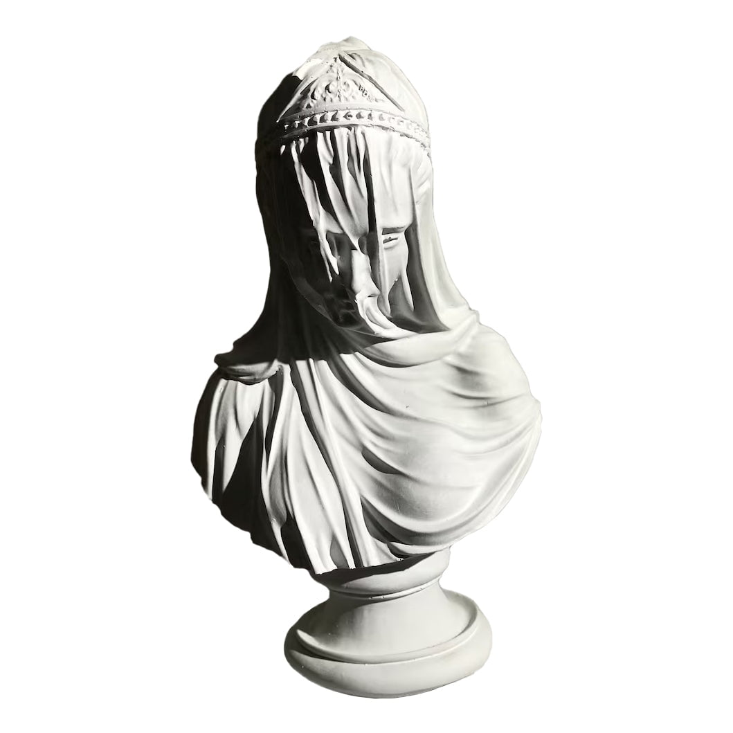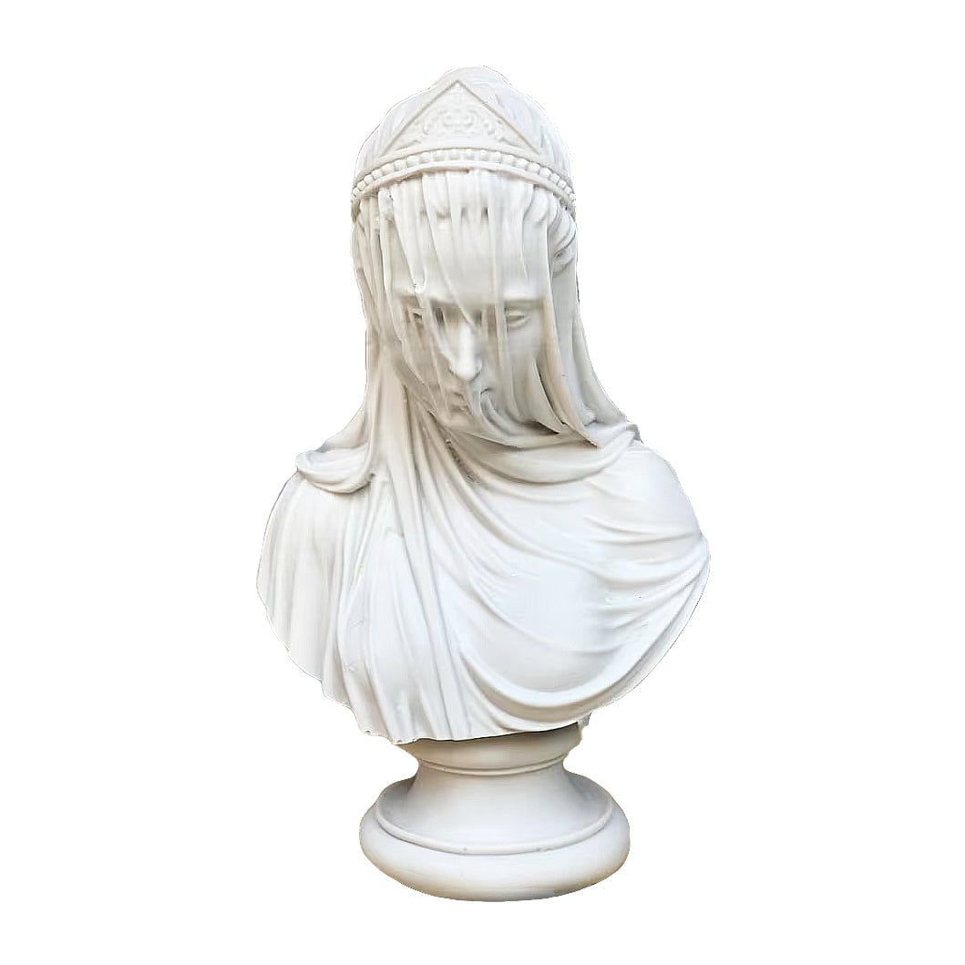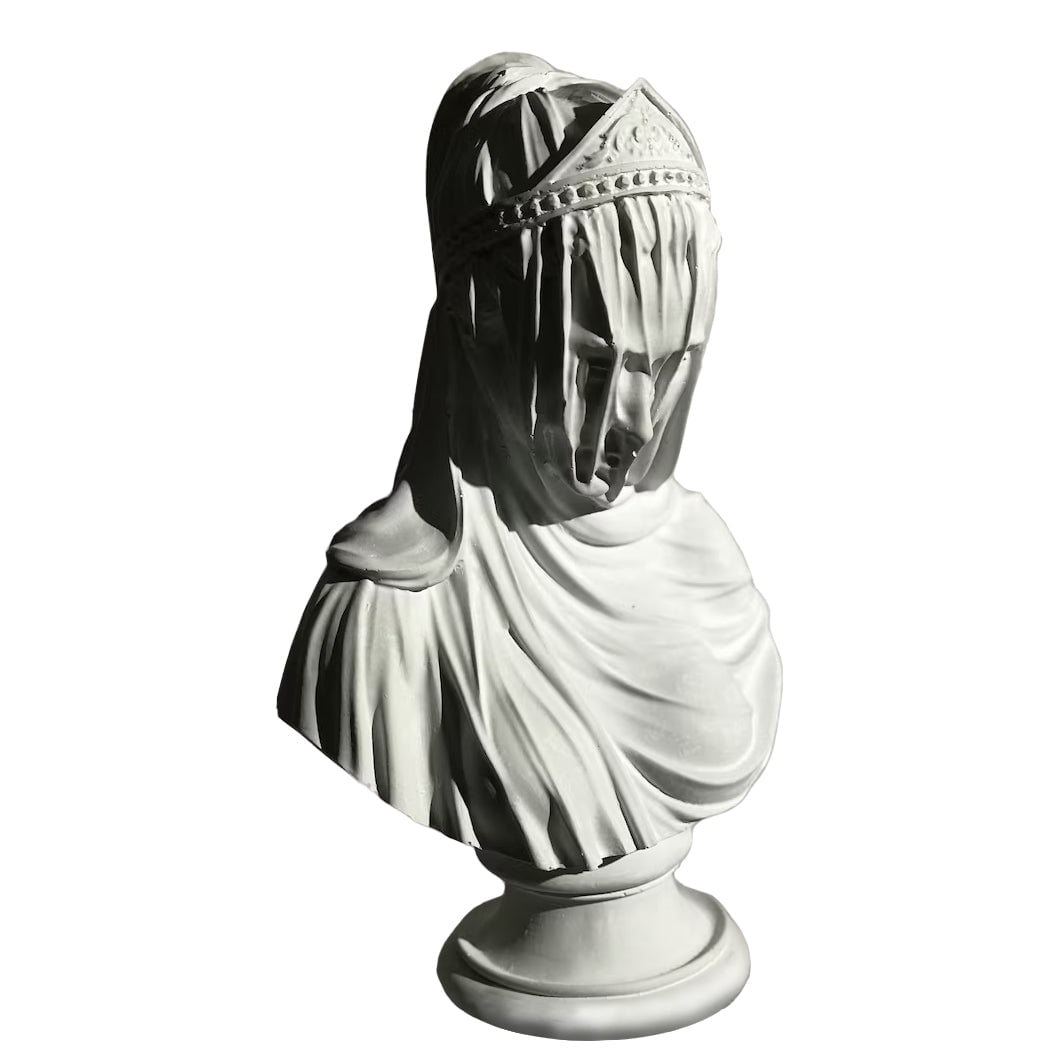 Introducing the Veiled Lady in White Sculpture, a captivating and ethereal masterpiece that encapsulates beauty and mystery. This exceptional sculpture portrays the head of a lady delicately covered in a graceful veil, meticulously crafted with meticulous attention to detail. Cast in pristine white, the sculpture exudes an aura of purity and elegance. The intricate details of the lady's serene face and the gentle folds of the veil evoke a sense of timeless allure and intrigue. Whether displayed in an art gallery, a serene sanctuary, or a tastefully adorned home, the Veiled Lady in White Sculpture becomes a captivating centerpiece, inspiring a sense of wonder, contemplation, and artistic appreciation. Immerse yourself in the captivating presence of this sculpture, and let it envelop you with its enchanting beauty and the air of mystery it exudes.