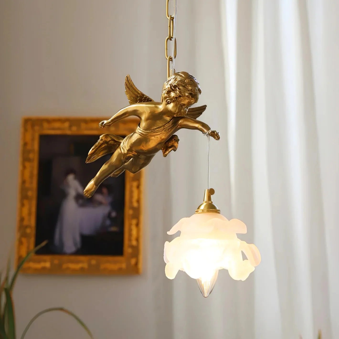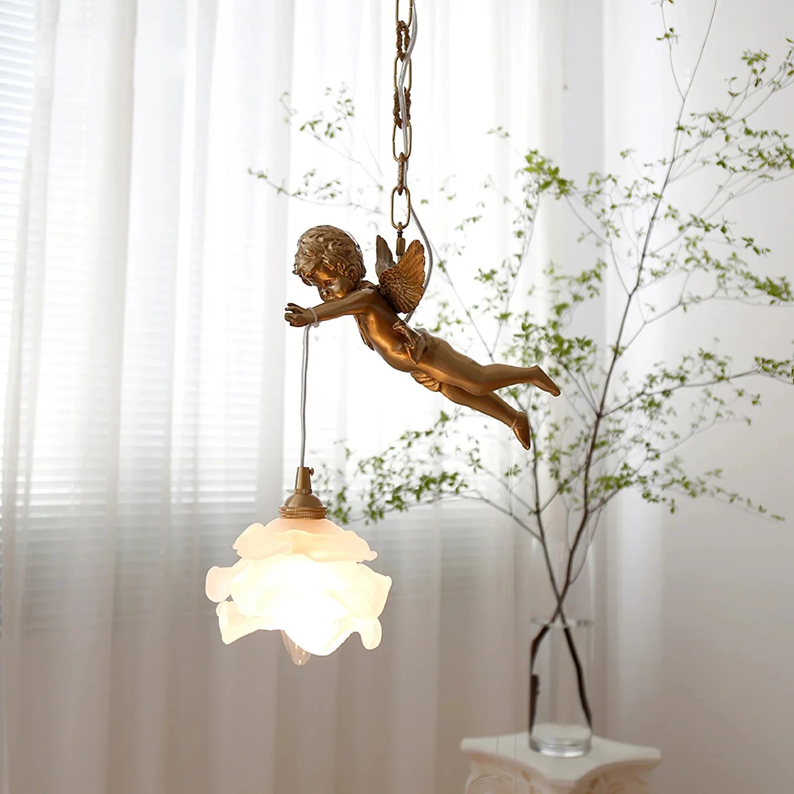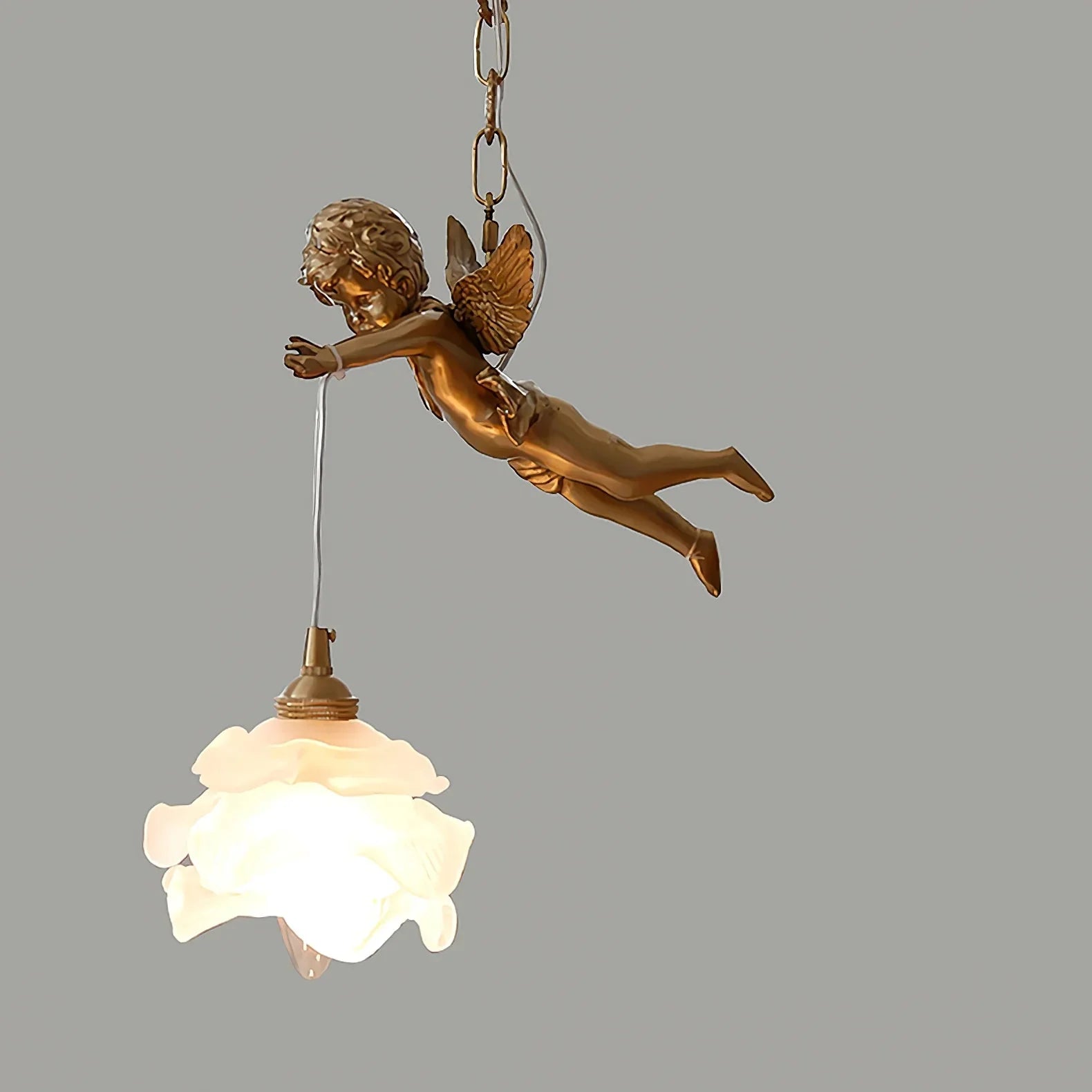 The Vintage Angelica Pendant Light is an exquisite addition to any space. With its beautiful design of an angel carrying a flower, this pendant light will add a touch of elegance and sophistication to your home decor.
