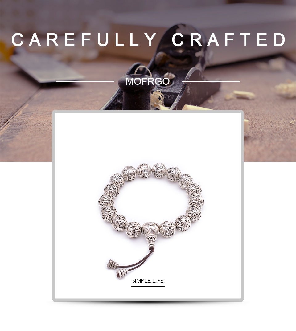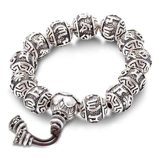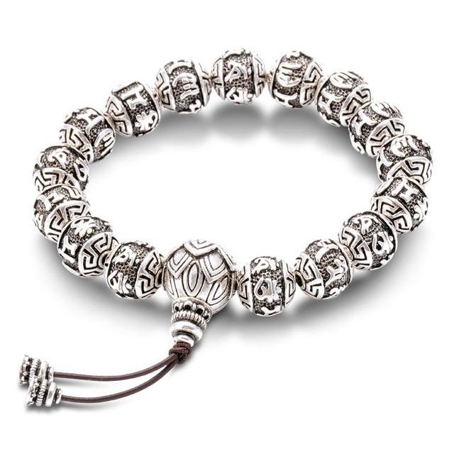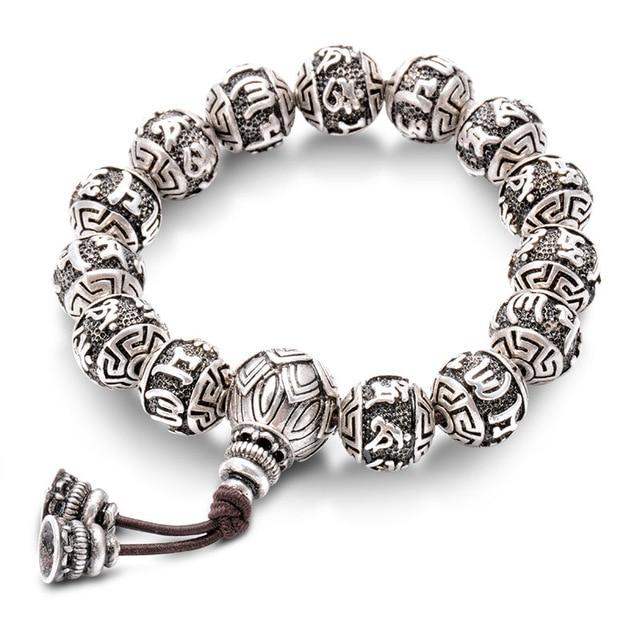Vintage Tibetan Buddhism Brass Silver Plated Charm Rope Bracelet Men Six Words Mantras Mala Yoga Lotus Prayer Beads Bracelet