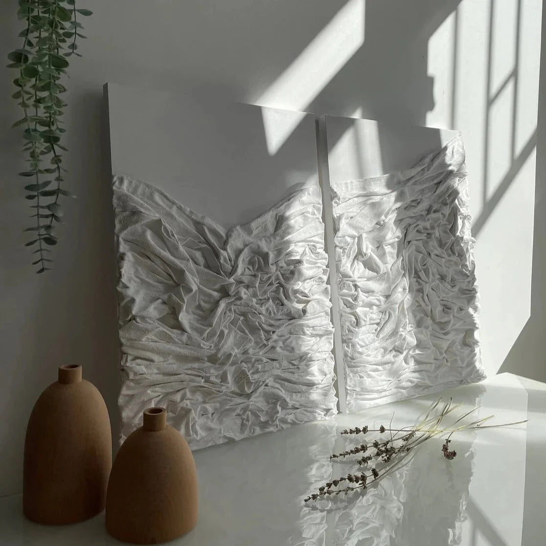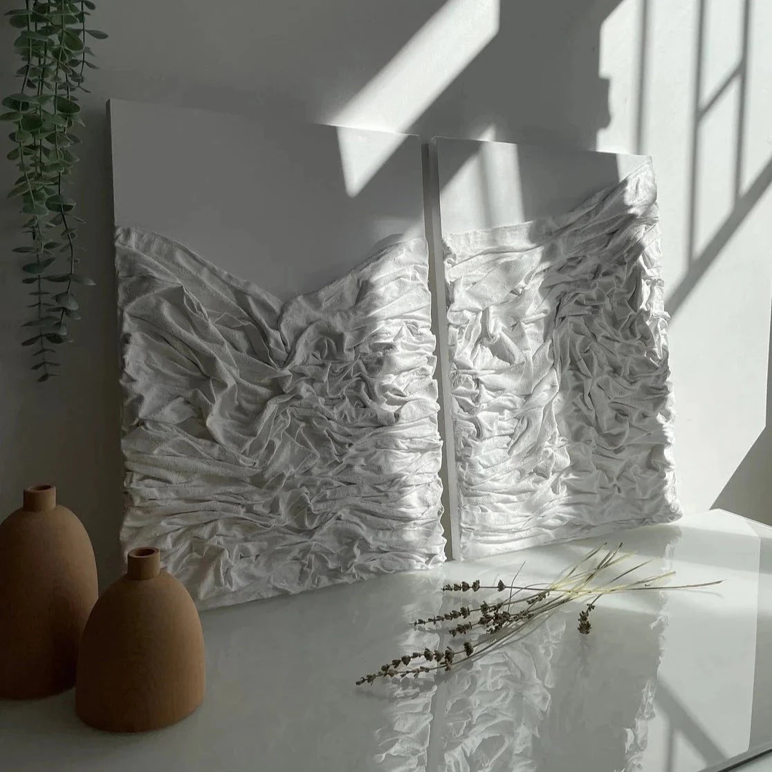 White Fabric Textured Painting Wall Art