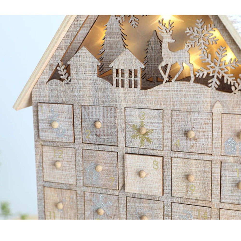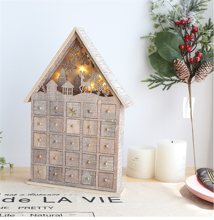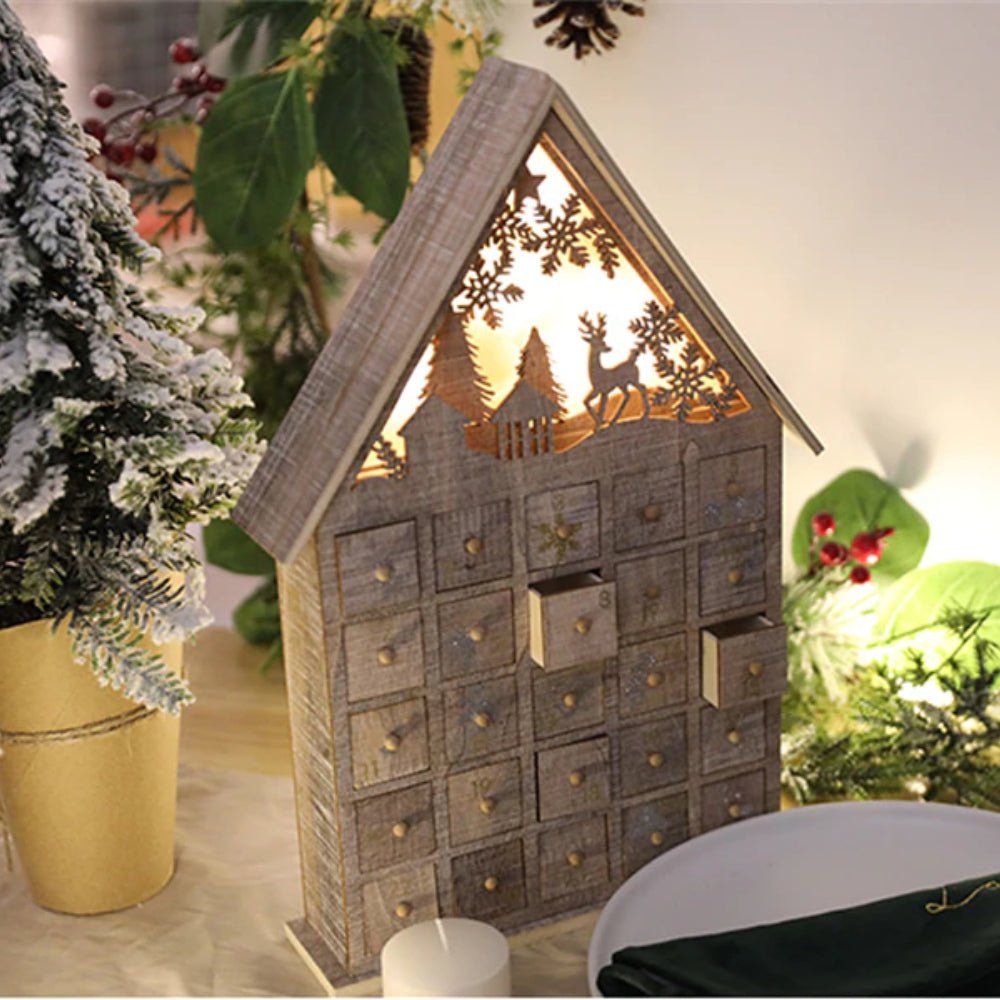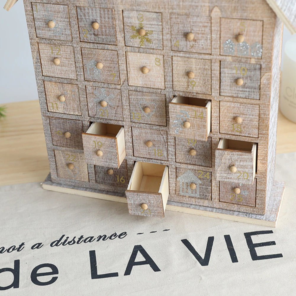 Decorate your home with our Wooden House Advent Calendar. You can put gifts in the drawers and allow kids to open one drawer each day until Christmas. It will bring joy to your family as Christmas approaches. Use this Christmas countdown decoration to decorate your table, office, or fireplace to create a fun and lovely holiday atmosphere for your family.